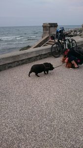 Da ist es…. das Hotel….Auf dem Weg dorthin bin ich von einem anderen Wanderer begrüßt worden, der auf der anderen Straßenseite entgegen lief. Keine Ahnung, was er gesagt hat, aber er hat gewunken und gegrinst 😁 An der Straße war es laut und stinkig…Habe dann irgendwann einen alternativen Weg genommen durch den Park am Wasser. Im Hotelzimmer angekommen, habe ich nach dem Duschen erstmal was von meinen mitgebrachten Lebensmitteln vernichtet… (natürlich in mich hinein ;-)), ich habe das dringende Bedürfnis ziemlich schnell von den 16,5kg Rucksackgewicht runter zu kommen.. Hmmmm, aber was ich gegessen habe, waren vermutlich nicht mal 200g….Also ich muss mich ran halten…